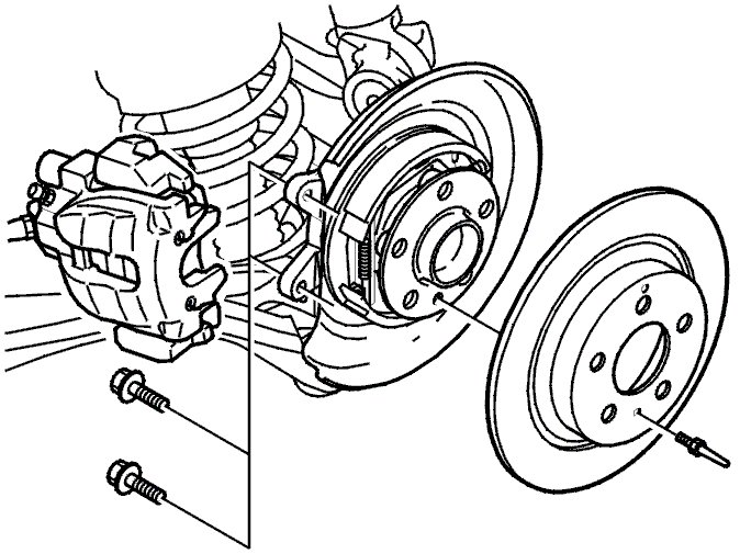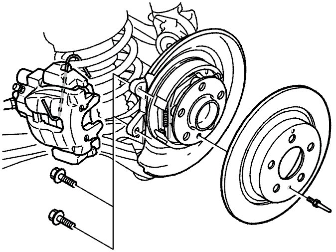 - the brake caliper mounting screws.