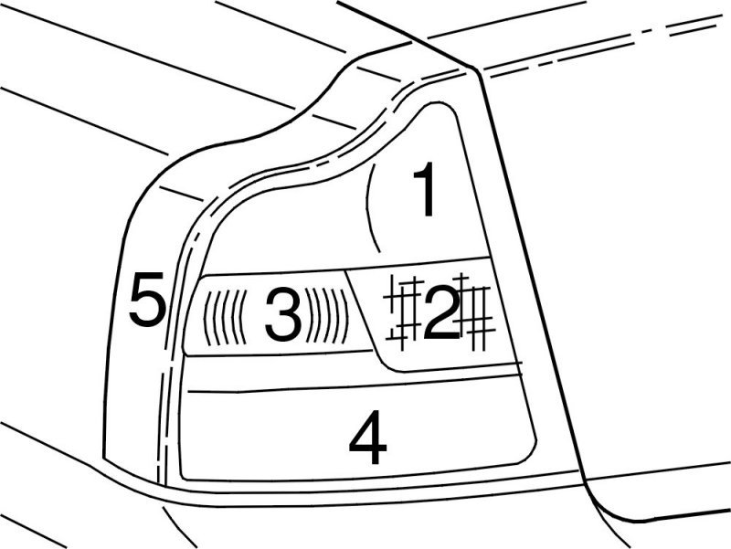 For the location of lamps in the tail lamp, see the illustration.