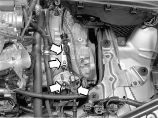 Unhook the mounting with the connector for the transmission from the bracket for the air cleaner (ACL) housing.