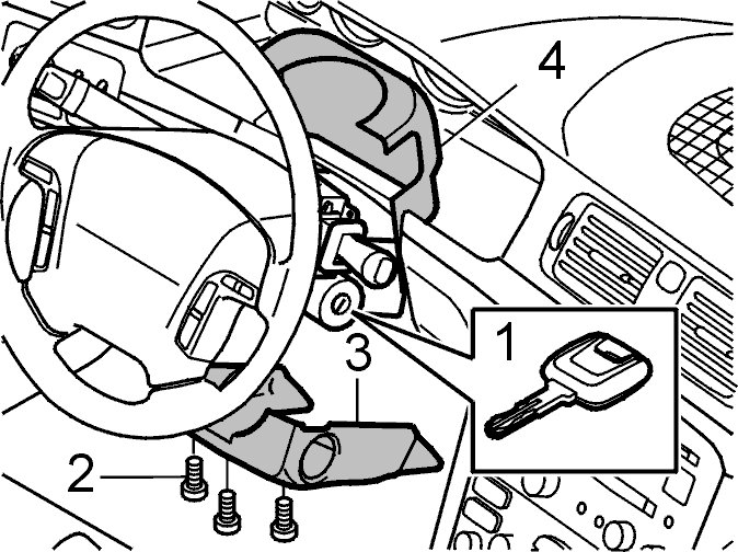 - Press in the snap-in fixings and remove the lower steering column cover (3).