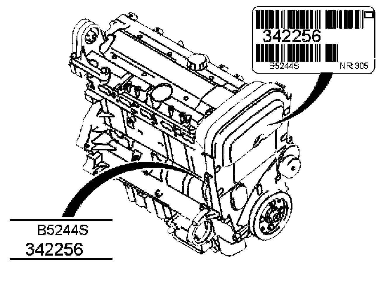 There is also a decal on the timing cover with the engine type, manufacture number and serial number.