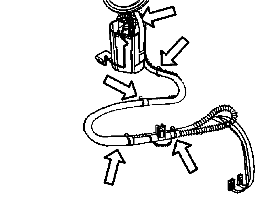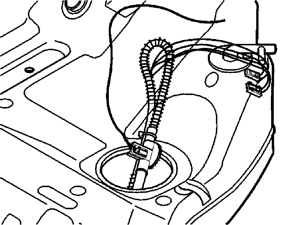 The wire must be sufficiently long that it reaches over to the opposite side of the tank with some excess remaining to ensure that it does not slide into the tank. The wire is needed to pull the hoses and wiring back to the left-hand side of the tank after the fuel tank unit has been replaced.