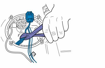 Connect a new cable harness to the connector by the sill and the fuel tank.