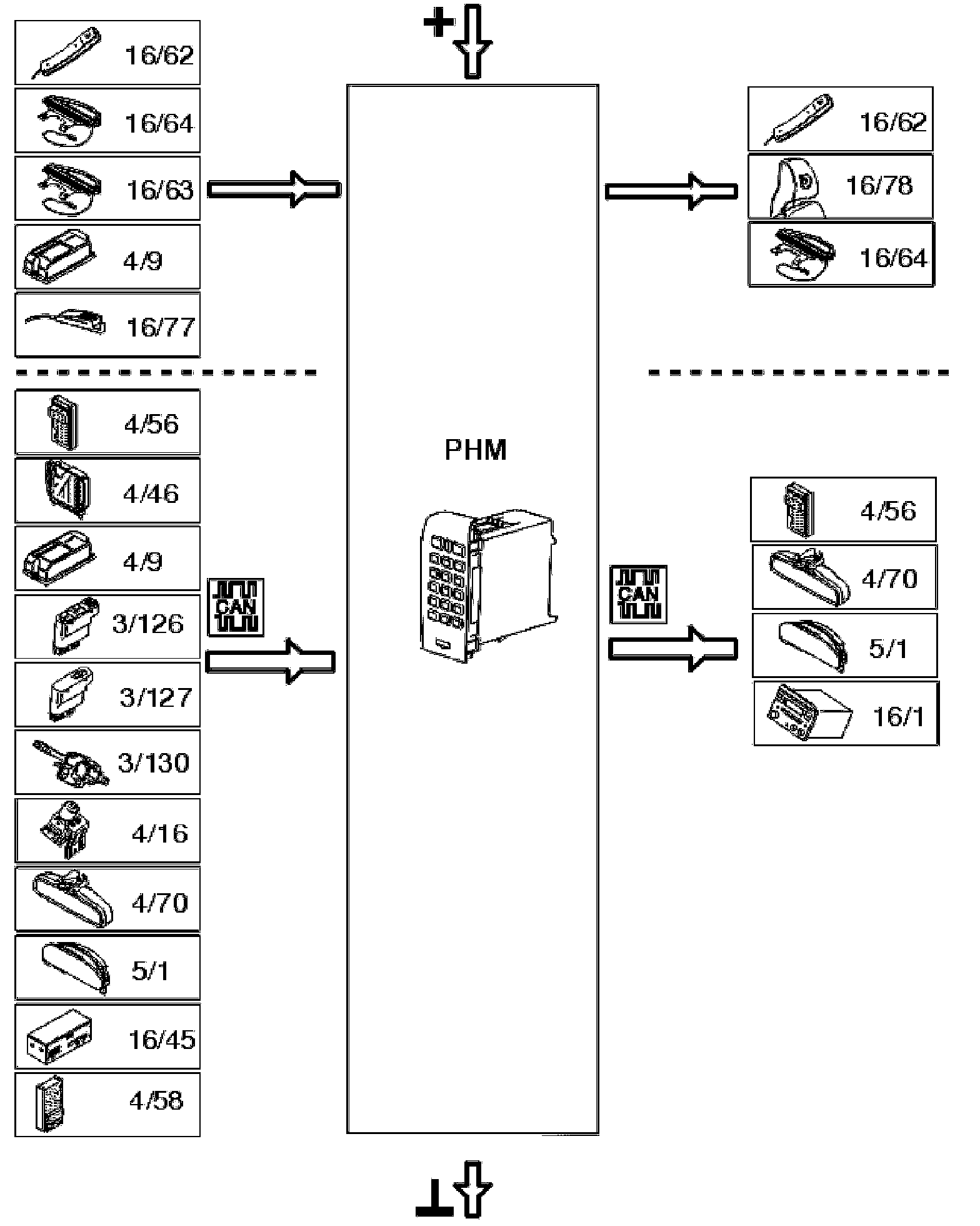 The phone module (PHM) is directly connected to the components and to the other control modules via the Controller Area Network (CAN).