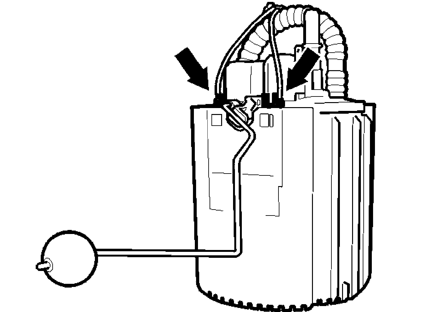 Lift up the float arm to the center position. Remove the level sensor.