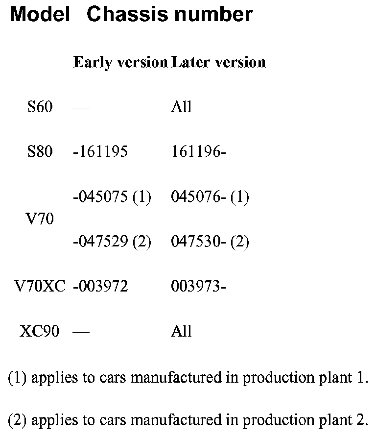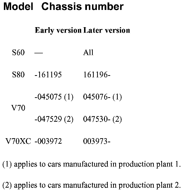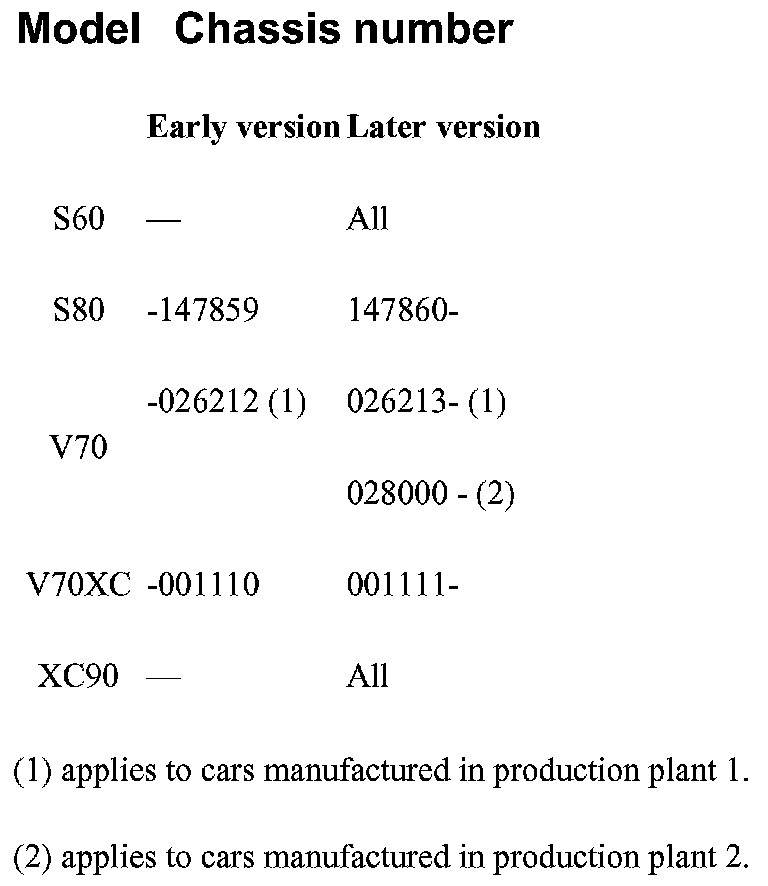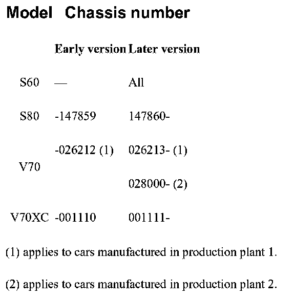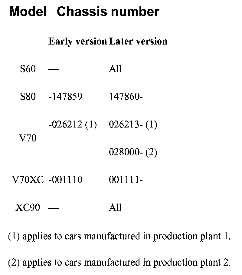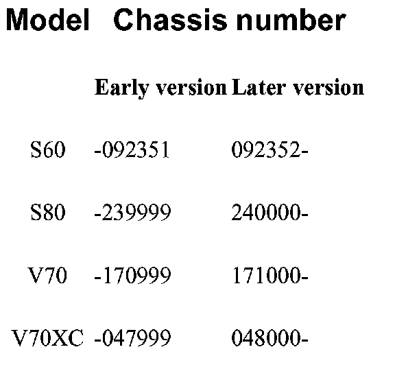 The difference in chassis numbers between the two versions is shown in the table.