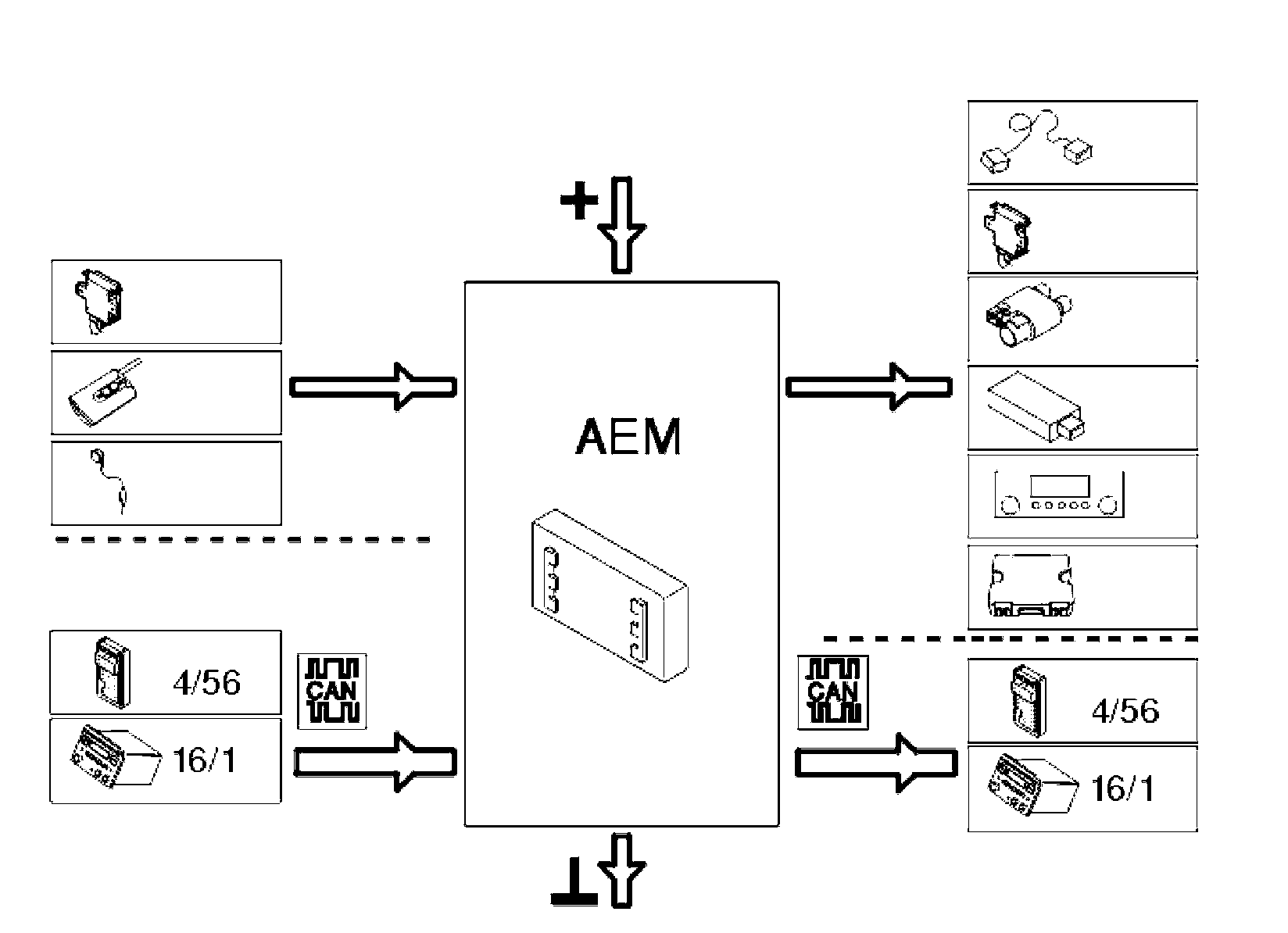 - One later version, which is connected to the Controller area network (CAN) of the car via the accessory electronic module (AEM).