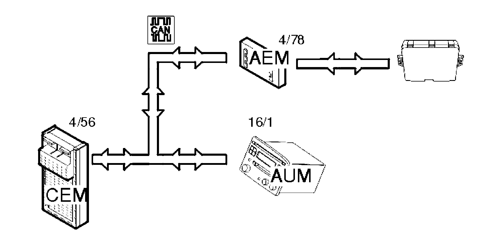 In this case the accessory electronic module (AEM) functions as a port between the Controller area network (CAN) of the car and the aftermarket alarm unit.
