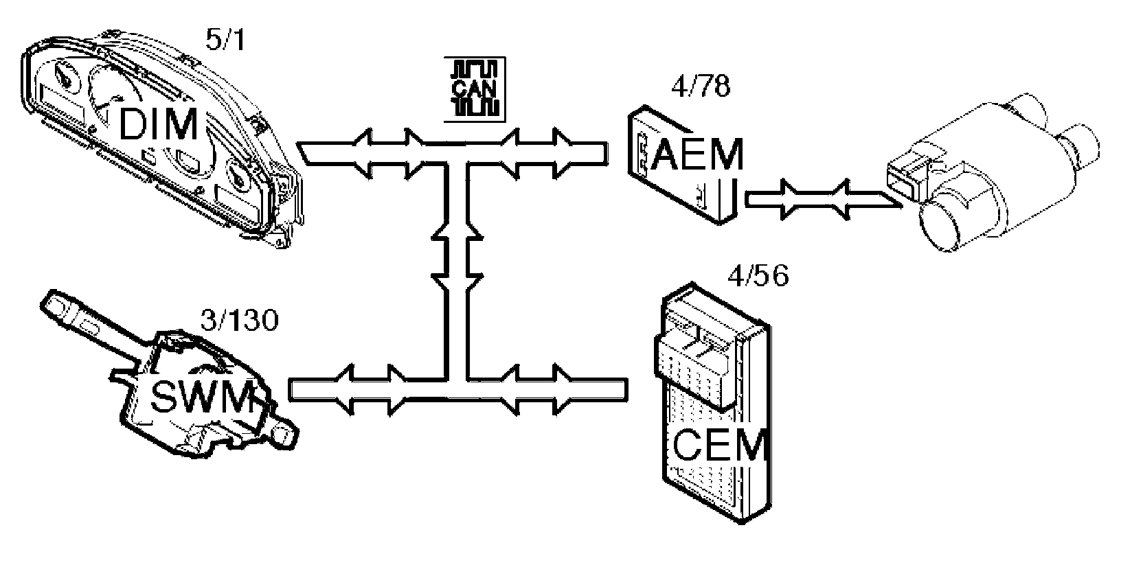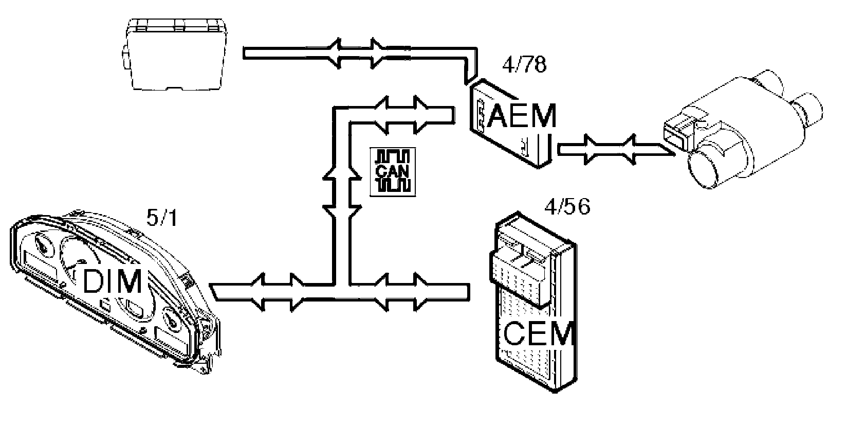 The accessory electronic module (AEM) then transmits a signal via the Controller area network (CAN) to the central electronic module (CEM) (4/56), which in turn starts the parking heater.