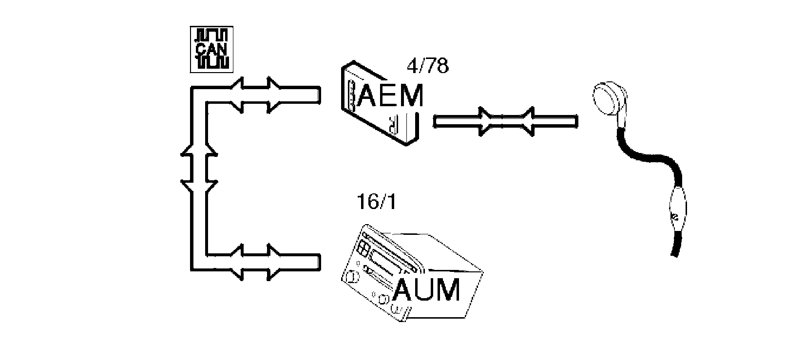 The accessory electronic module (AEM) (4/78) then transmits a signal to the audio module (AUM) (16/1) via the Controller area network (CAN).