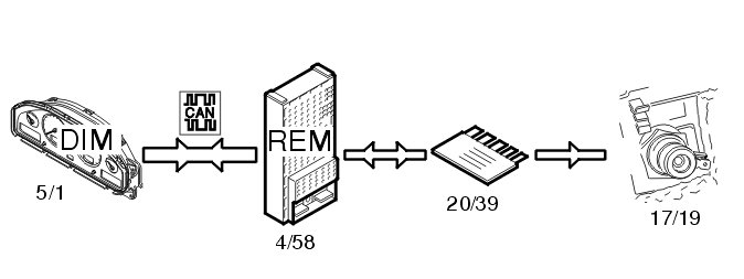 - the central electronic module (CEM) (4/56) transmits a signal indicating the position of the ignition key. The key must be in position II.