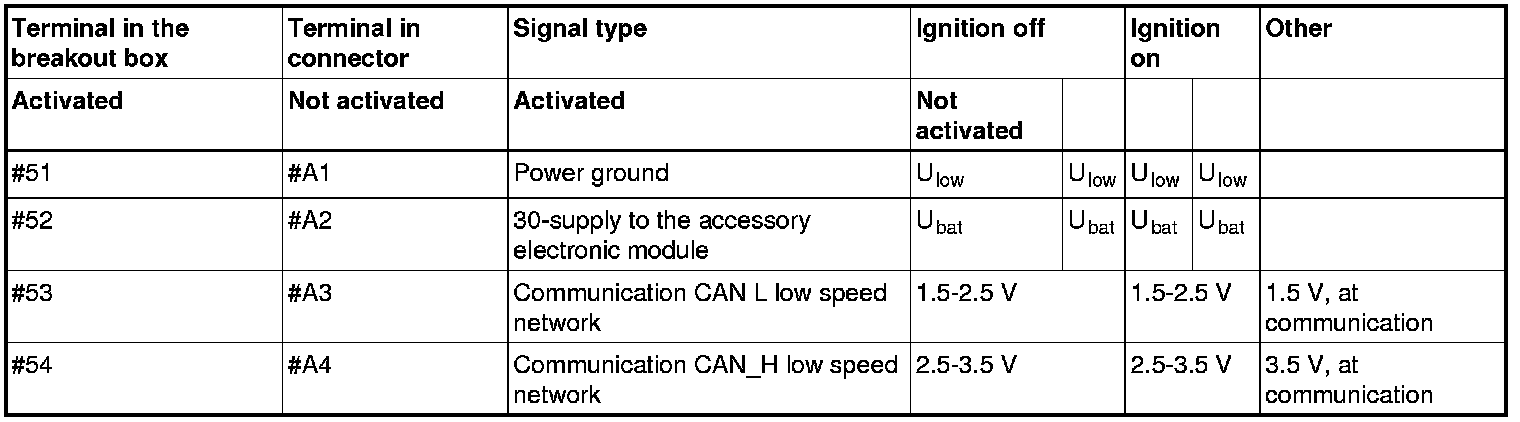Signal description. Accessory electronic module (AEM)