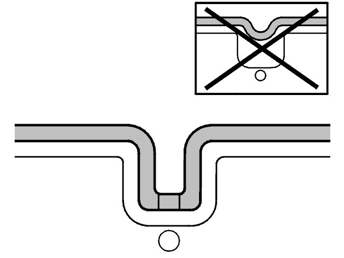 If the heater pad is the type where the pad and/or cable is placed in the channel, the pad must follow the foam filling as illustrated. If not, the pad and/or cable may be loaded and damage the pad. The type of seam on the upholstery may cause wear in the long term.