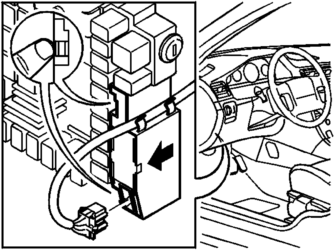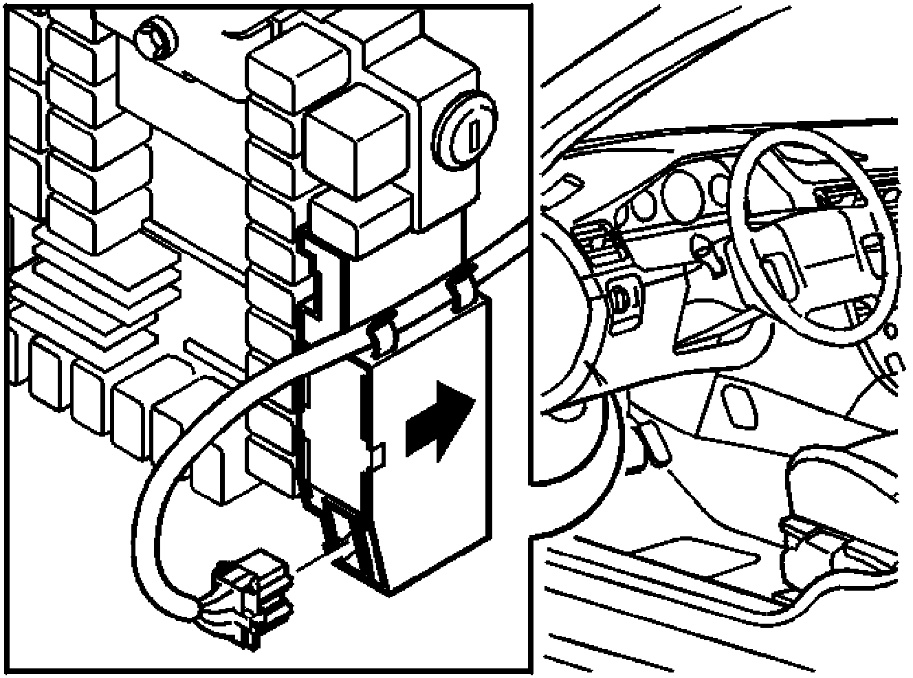 Install the cable in the holder for the control module. Press the connector into place.