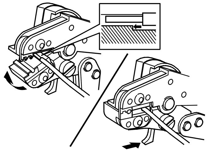 Align the ferrule. Use tool 951 2869 Ferrule crimping tool 951 2869 Ferrule Crimping Tool as illustrated.