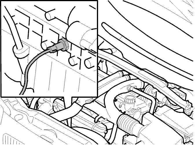 The oil pressure sensor is located on the bottom edge of the engine, to the left of the front engine mounting.