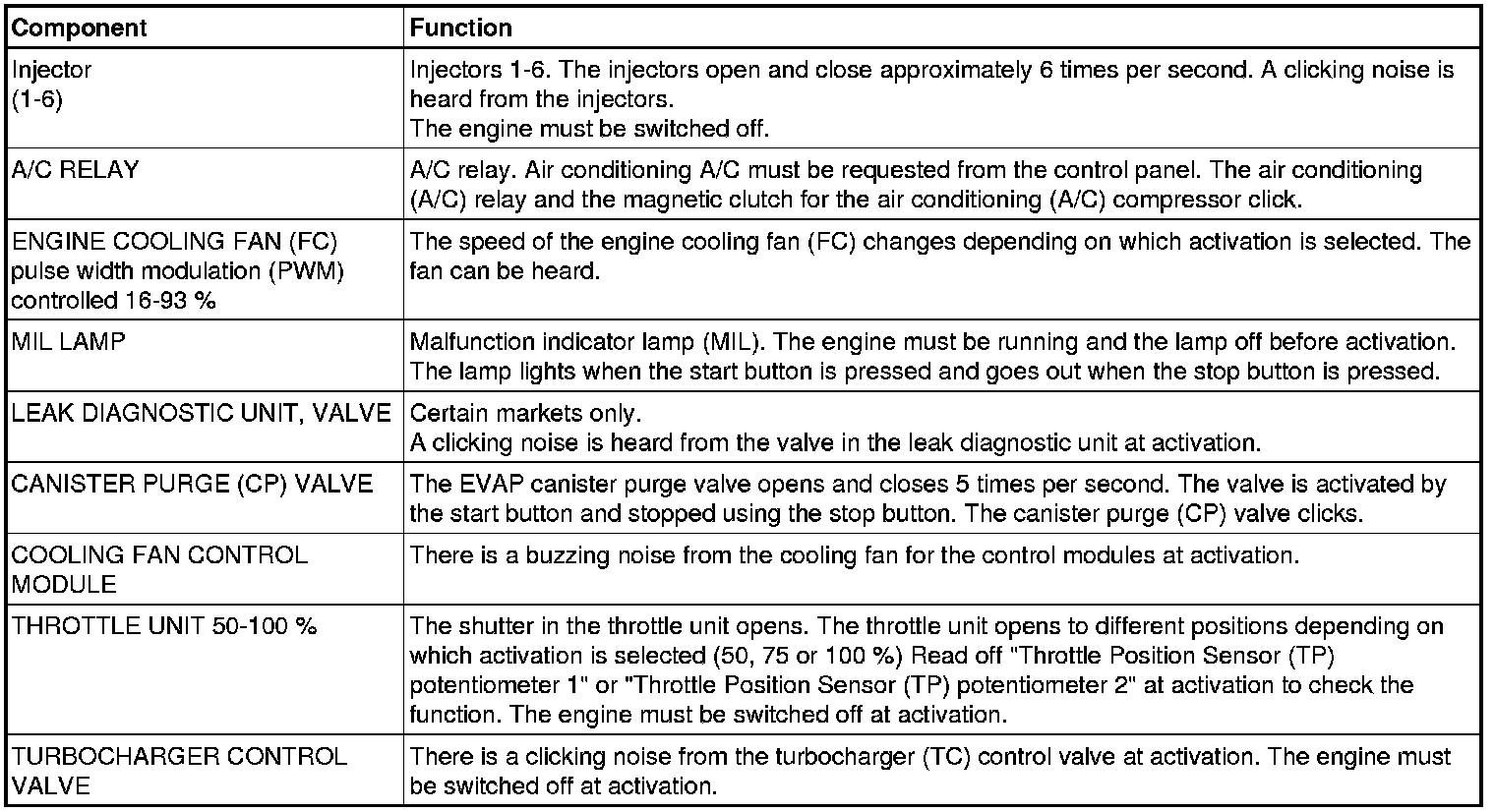 Description of Component/Functions Activation