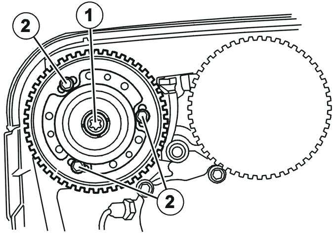 Slacken off, but do not remove the screws (2) which secure the timing gear pulley to the variable valve timing unit.