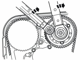 Turn the timing gear pulley until the screws at the oval holes are in the center position. Tighten the screws (2) slightly.