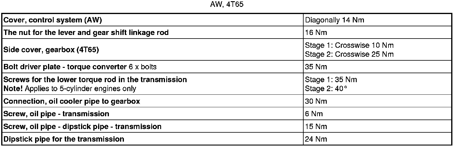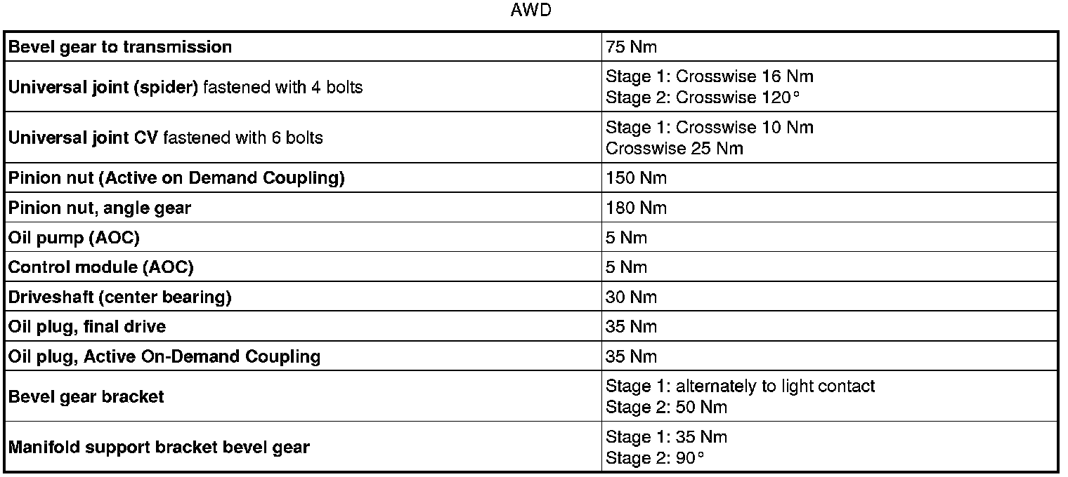 See the table below to find the tightening torques for components not included in the summary.