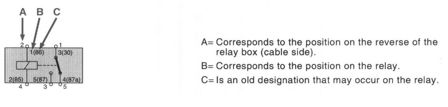 The relay locations are given two or three different designations in the wiring diagram. This is described below.