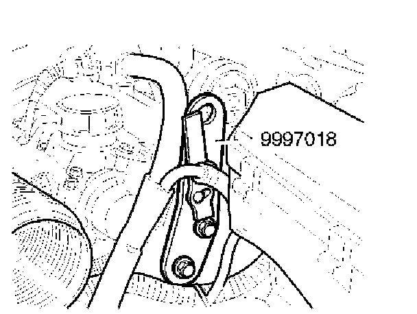 Position lifting beam 999 5716 on the wheel arch and directly above the engine lifting lug on the left and right-hand sides.