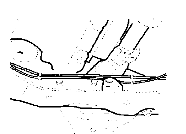 Remove the delivery line for the steering gear from the snap fastener on the sub-frame. Remove any fuel line to the engine block heater.