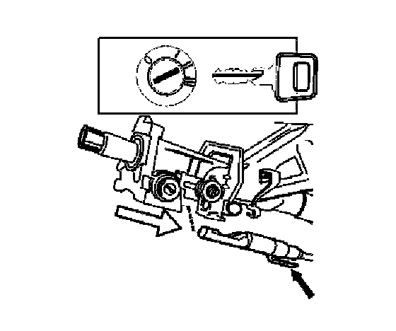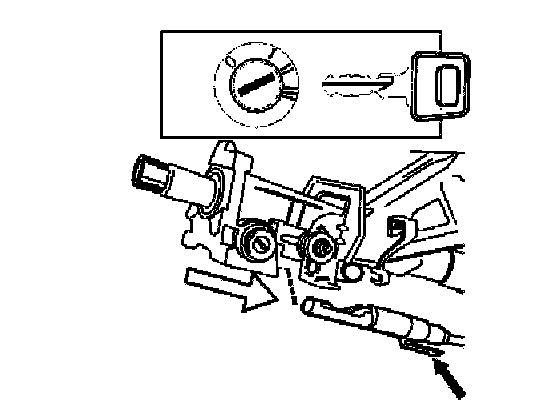 Press the end of the gear selector cable into place in the ignition switch. Ensure that the locking tabs for the gear selector cable are engaged and locked.