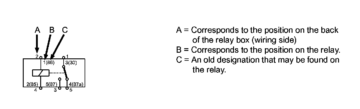 The diagram indicates two or three different designations for the relay's position. This is described in the above figure.