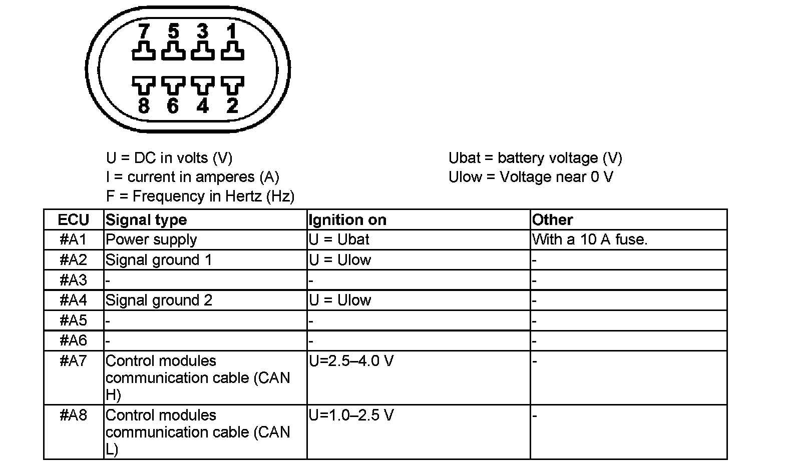 All the values indicated are taken between the terminal in column 1 and terminals #2 or #4 (ground). Pins 3, 5, and 6 are not used.