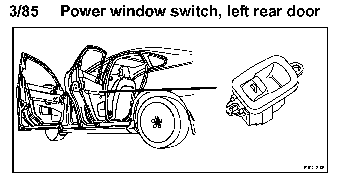 3/85 Power Window Switch, Left Rear Door: