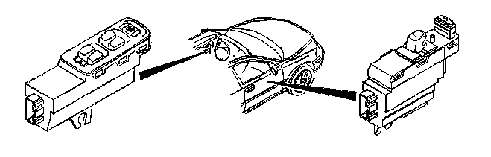 Driver door module (DDM) (3/126) is located in the driver's door and the passenger door module (PDM) (3/127) is located in the passenger door. Amongst other things, switches for window lifts are located on the top part of the control modules. The appearance and physical design differs between the two control modules.
