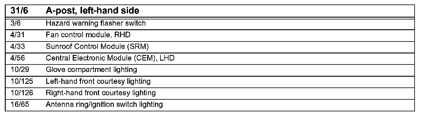 31/6 Ground Connection, Driver's Side A-Post: