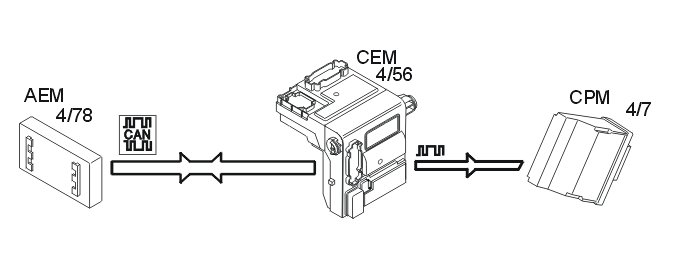 The central electronic module (CEM) (4/56) receives data about when the driver wants to drive from the control stalk module (steering wheel module (SWM)) (3/254) and the driver information module (DIM).