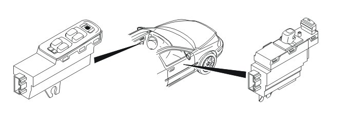Driver door module (DDM) (3/126) is located in the driver's door and the passenger door module (PDM) (3/127) is located in the passenger door. Amongst other things, switches for window lifts are located on the top part of the control modules. The appearance and physical design differs between the two control modules.