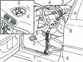 - the steering wheel. Pull the wiring out of the hole (3).