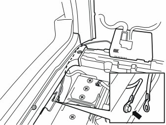- Route the pre-routed ground lead in the cable harness forwards to the ground terminal behind the battery.