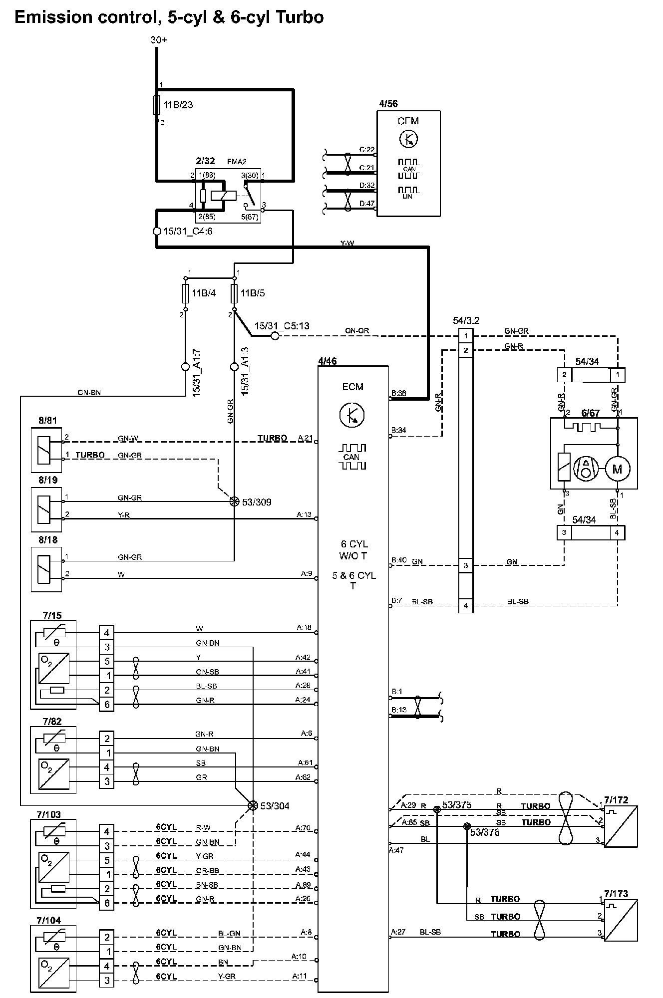 Emission Control, 5-Cyl & 6-Cyl Turbo:
