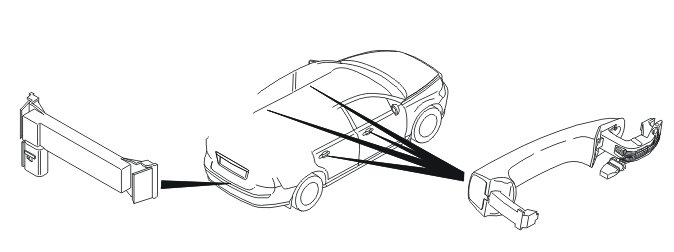 The external antennas are installed in the four door handles and in the rear bumper. The antennas allow the keyless vehicle module (KVM) to communicate with a key outside the vehicle.