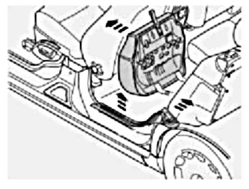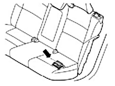 The new location is on the left side beneath the rear seat cushion and carpet as illustrated.