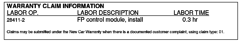 When replacing a defective FP control module, use the new part, and install it in the new location. This TNN describes the method of replacing the old FP control module with the new FP control module in its new location.