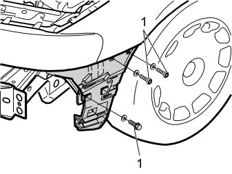 - Remove the nuts (1) from the wing liner. Fold down the wing liner (2).