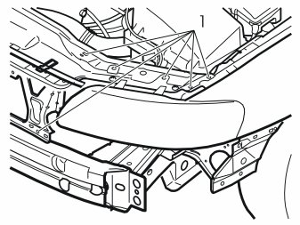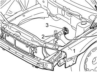 - Disconnect the wire from the left bonnet catch (3). Remove the bonnet catch.