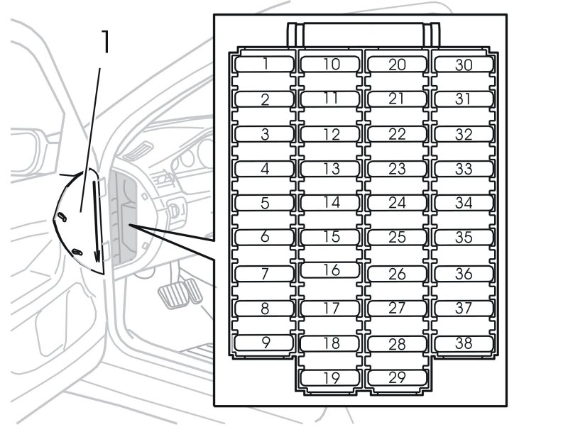 - Remove the two screws (1) on the number plate holder. Remove the number plate holder
