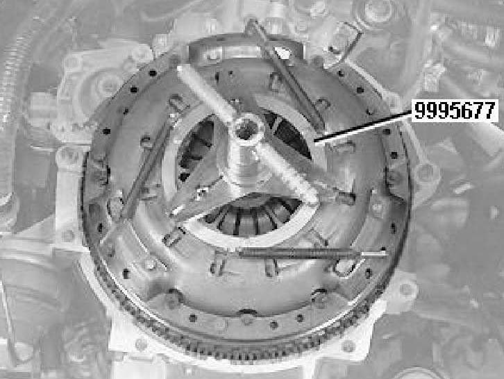 Check that the clutch automatic adjustment is secured with counterhold 999 5677.
