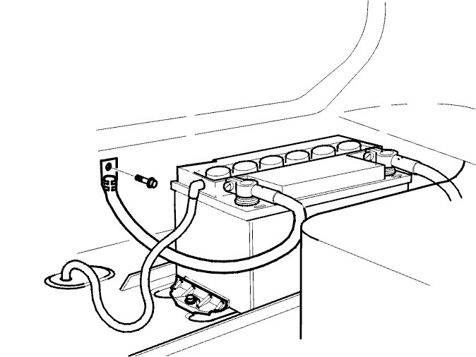 - Remove the floor hatch, bracket and the protective cover over the battery. See Battery, replacing Battery, Replacing