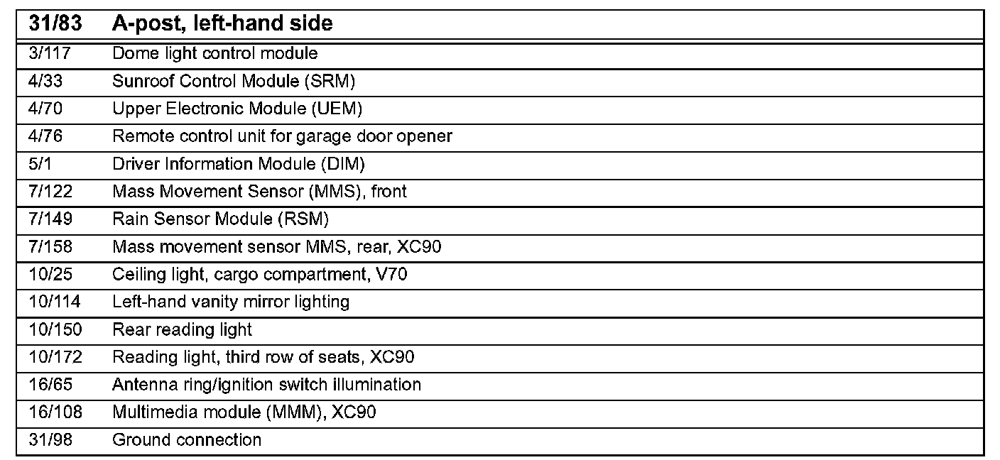 31/83 Ground Connection, A-pillar Left Side: