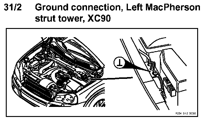 31/2 Ground Connection, Left MacPherson Strut Tower: