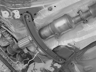 Install the three-way catalytic converter (TWC) in the rubber mountings. Connect the connector for the rear heated oxygen sensor (HO2S). Secure the cable harness in the SIPS member. Remove the tool, 999 7089 Adjustment tool 999 7089 Adjustment Tool.