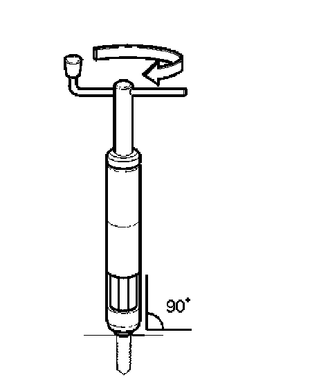 Hold the installation tool straight above and centered over the hole. Screw in the insert without applying pressure on the spindle handle.